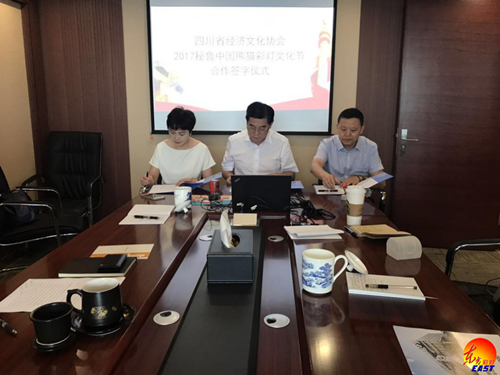 授牌儀式后,舉行了自貢燈貿(mào)集團股份有限公司與四川省經(jīng)濟文化協(xié)會“2017秘魯中國熊貓彩燈文化節(jié)”合作簽字儀式。