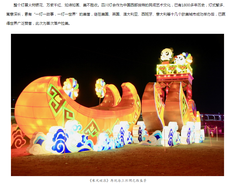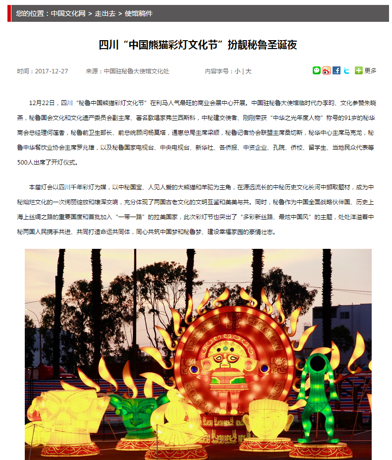 國家文化部官網(wǎng)專題報(bào)道:東方彩燈∣四川“中國熊貓彩燈文化節(jié)”扮靚秘魯圣誕夜