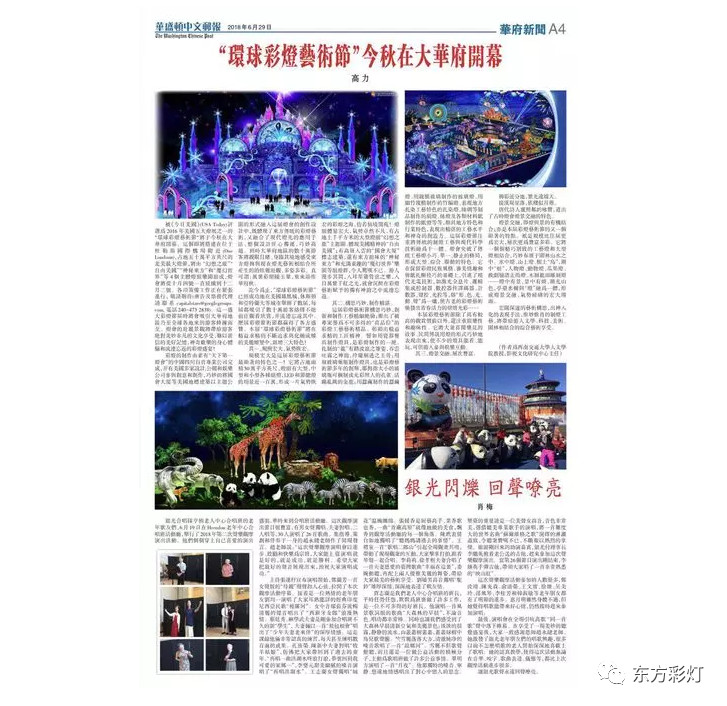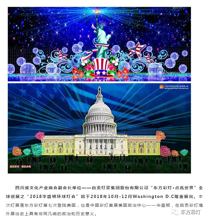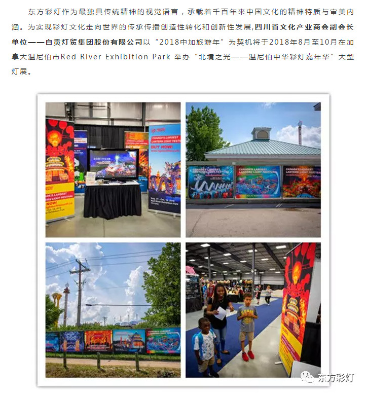 為推進(jìn)中國(guó)傳統(tǒng)彩燈文化的國(guó)際傳播能力,講好中國(guó)故事,展現(xiàn)真實(shí)、立體、全面的中國(guó)。自貢燈貿(mào)集團(tuán)股份有限公司“東方彩燈.點(diǎn)亮世界”全球巡展項(xiàng)目之--2018加拿大溫尼伯、溫哥華;美國(guó)華盛頓、圖森、菲尼克斯燈展已開啟大幕。近日,四川省文化產(chǎn)業(yè)商會(huì)對(duì)我公司2018北美系列外展進(jìn)行了專題報(bào)道。