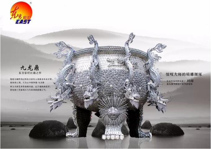 東方彩燈人構思與制作的過程用著光年在計算,漫長的工期,只為心中的夢想——九龍鼎,樹立全新藝術作品的奇跡,近乎偏執(zhí)的追求,繁復的工藝展現(xiàn)出與生俱來的磅礴之氣。