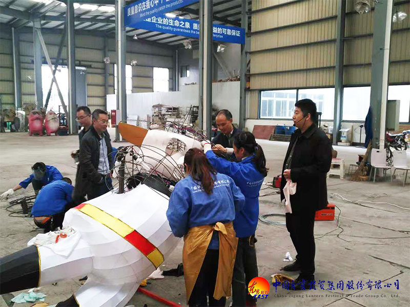 考察領導在“東方彩燈”出口基地制作車間饒有興趣的參觀燈組制作現(xiàn)場。