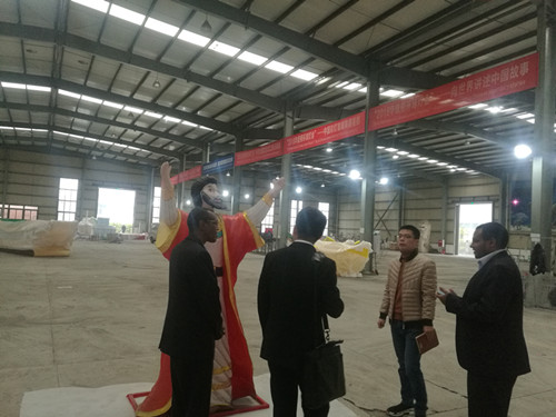總領(lǐng)事Kebede Abera Ido一行在自貢燈貿(mào)集團國韻公司副總經(jīng)理明祥東的陪同下參觀了東方彩燈出口基地生產(chǎn)車間,詳細了解了彩燈燈品制作、彩燈境外展出等相關(guān)情況。隨后,總領(lǐng)事Kebede Abera Ido一行來到燈貿(mào)集團會議室,聽取自貢燈貿(mào)集團“東方彩燈·點亮世界”全球巡展項目及公司近年外展情況的全面匯報。