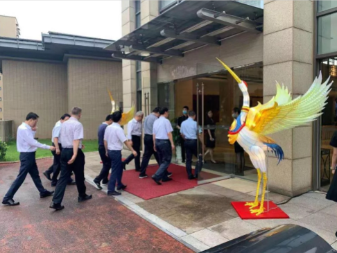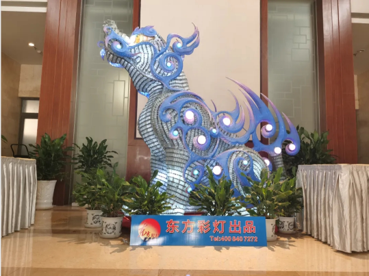為彰顯自貢彩燈文化名片,市政府有關(guān)部門精選自貢燈貿(mào)集團(tuán)股份有限公司自有品牌“東方彩燈”出品的兩組具有傳統(tǒng)彩燈藝術(shù)特色燈組—“瑞鶴”、“諦聽”呈放接待現(xiàn)場(chǎng)。