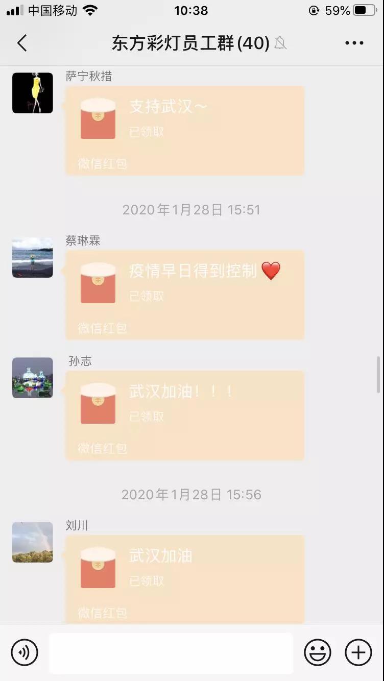眾志成城,共克時艱。面對疫情,沒有人是一座孤島,我們隔絕病毒,但是絕對不隔離愛。在這場沒有硝煙的戰(zhàn)役里,東方彩燈作出迅速響應,密切關注疫情發(fā)展,大家一致研究決定向湖北省武漢人民伸出援助之手,公司和員工共計捐款近3萬元,來共同對抗這場突如其來的疫情,以助力馳援武漢,守望相助,為武漢加油。