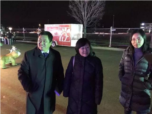 自貢燈貿(mào)集團執(zhí)行總裁陶建軍向駐美公使銜參贊李鴻介紹華盛頓燈展情況。