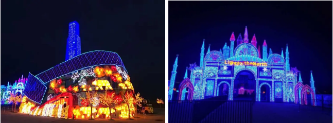中國著名的金沙太陽神鳥元素及三星堆文化為代表的古蜀文明也用彩燈來進行了美好的詮釋。