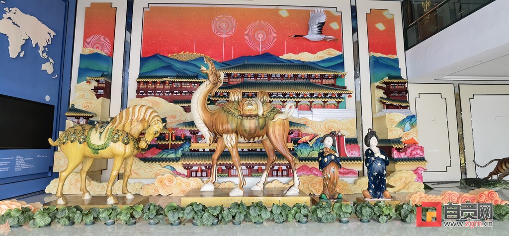 《唐風(fēng)華韻》系列燈組共有四座,分別是《三彩嘯天駱駝》《三彩勾頭馬》《三彩傾訴》和《三彩游春》,將自貢彩燈與唐三彩兩種非遺技藝全新融合,由自貢燈貿(mào)集團股份有限公司設(shè)計制作。