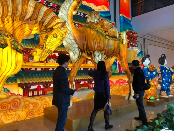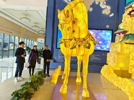 調(diào)研組一行參觀了東方彩燈(出口)基地,觀摩了燈貿(mào)集團(tuán)將自貢彩燈與唐三彩兩種非遺技藝的全新融合的“唐風(fēng)華韻”展品。集團(tuán)執(zhí)行總裁陶建軍向調(diào)研組一行介紹了燈貿(mào)集團(tuán)發(fā)展?fàn)顩r,以及公司全新彩燈產(chǎn)品。公司為促進(jìn)彩燈產(chǎn)業(yè)的創(chuàng)新性轉(zhuǎn)化和創(chuàng)造性發(fā)展,推出了文化+創(chuàng)意+科技全新彩燈產(chǎn)品,產(chǎn)品深度挖掘文化底蘊(yùn)動(dòng)線(xiàn),變被動(dòng)式觀燈為主動(dòng)式沉浸、行浸觀燈,燈展的供給創(chuàng)新能力和消費(fèi)場(chǎng)景獲客能力得到了較大的提升。