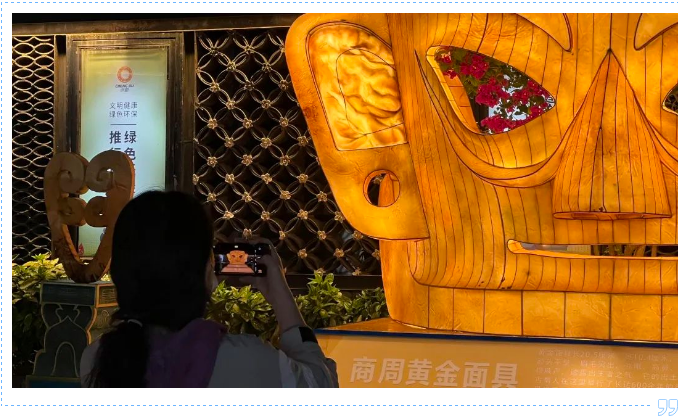 據(jù)悉,金沙遺址博物館和寬窄巷子還將在展覽期間舉辦豐富的互動(dòng)打卡活動(dòng),游客拍攝各個(gè)點(diǎn)位的燈組并上傳網(wǎng)絡(luò),即有機(jī)會(huì)領(lǐng)取精美的文創(chuàng)禮品。有興趣的游客不妨走進(jìn)寬窄巷子,在美輪美奐的彩燈光影中,在錯(cuò)落的屋檐與青灰色的磚瓦間,感受古蜀文化的魅力。
